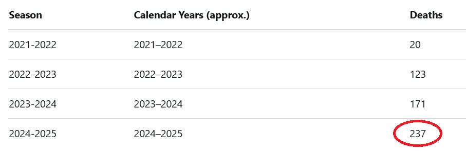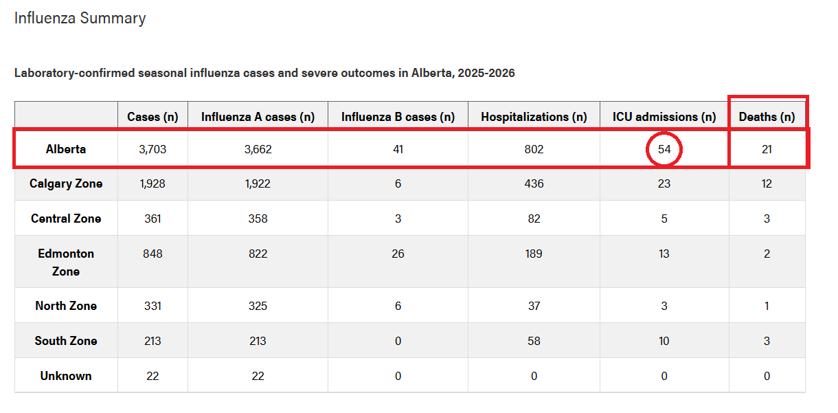 Where - while this already surpasses the total Influenza Related Deaths in the Province for the resurgence of Influenza in 2021-2022…it’s only about 10% of the growing mortality from the flu, in the province: