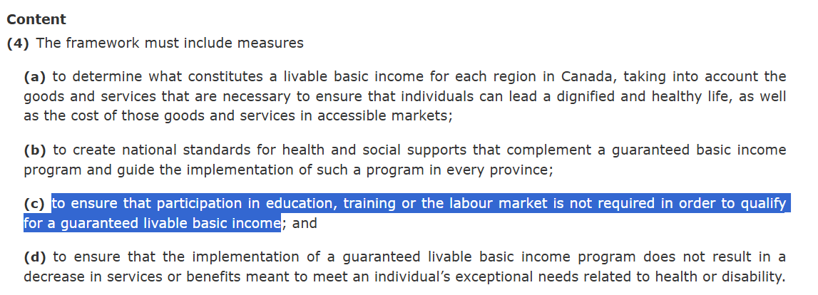 This was closed down under the Trudeau Government but reintroduced by Senetor Kim Pate: An Act to develop a national framework for a guaranteed livable basic income