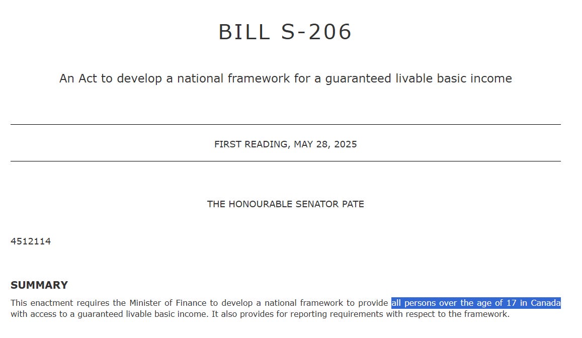 That’s the system we’re expanding with S-206. And don’t think it will stop with Canadians in need. This bill proposes benefits for everyone, not just people who’ve paid into the system, not just those working through tough times, but for anyone who simply exists in Canada. That includes newcomers, refugees, and recent arrivals, whether they’ve contributed a dollar in taxes or not.