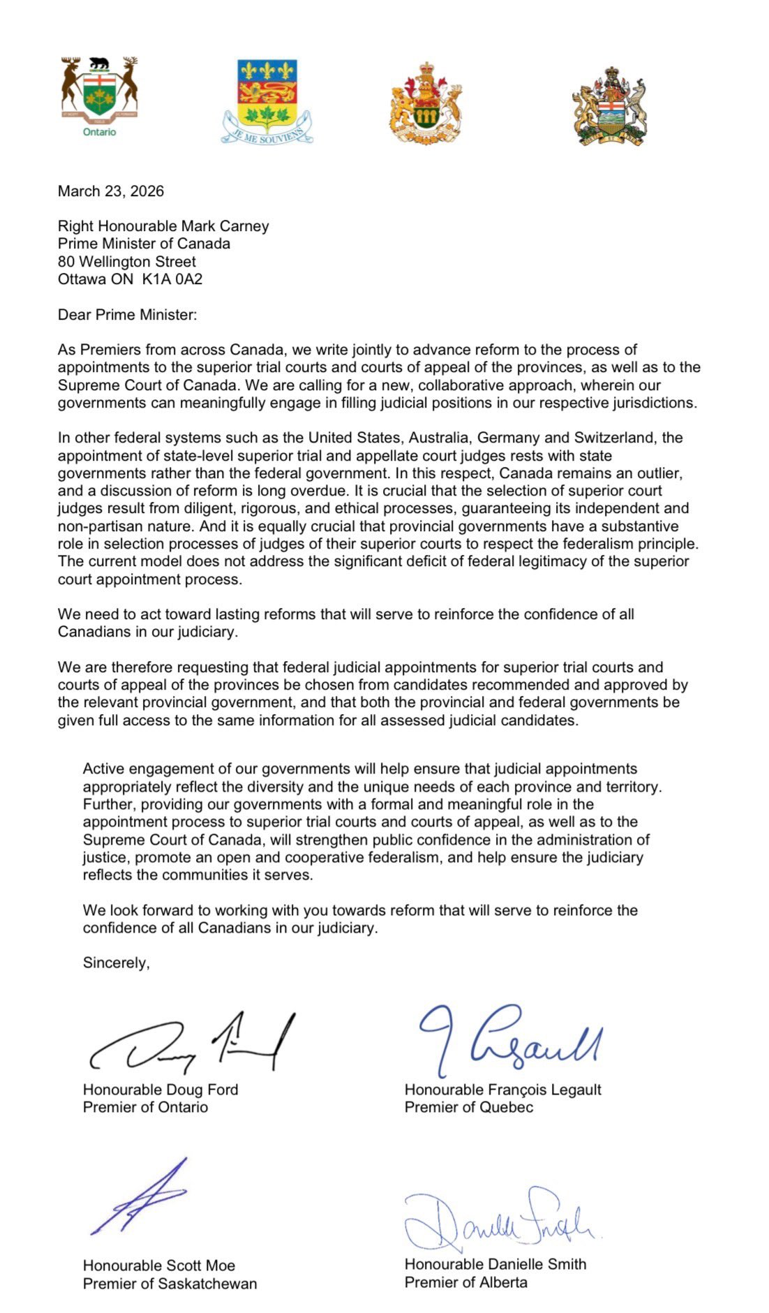 Now…four premiers - Danielle Smith, Scott Moe, Doug Ford and François Legault - have just signed another letter.