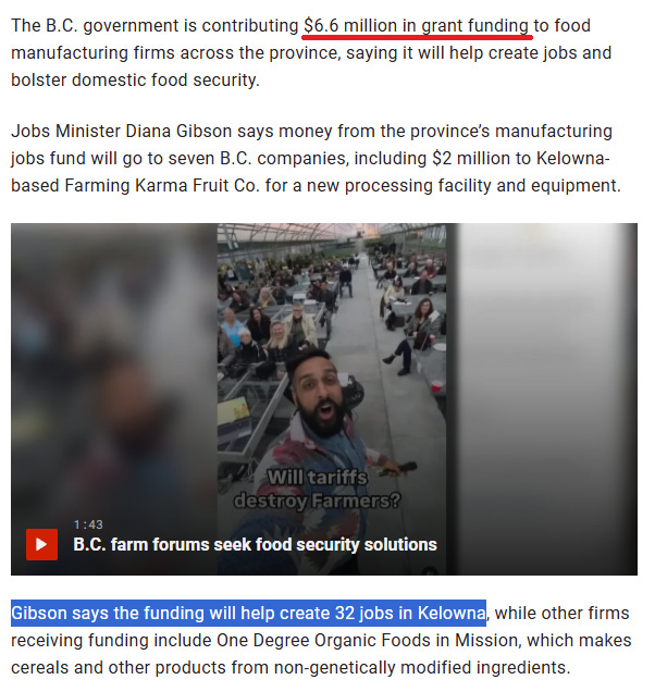 Now…the official story is that they’ve given $2 Million to a Kelowna based processing plant - which will do the work instead of workers…to help out with the “domestic food security” issue that absolutely NOBODY even understands as a conceptual problem…